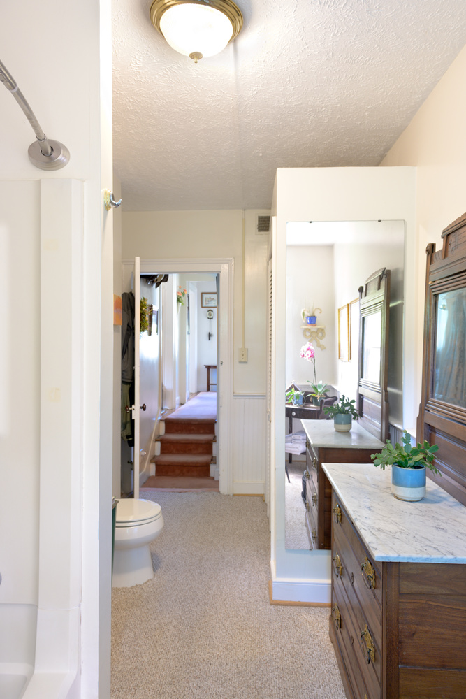 This beautiful 1 bedroom apartment is a separate apartment located on the entire top floor of this house at 214 South Street. The apartment is accessed by a shared front hall to the house maintained by the landlord. The apartment contains large rooms with tall ceilings and tall windows – very, very sunny. Beautifully restored random width pine floors are located throughout the apartment. The living room is 16 feet by 16 feet with a restored working fireplace and mantle. An attractive well equipped kitchen with high end appliances is located at one end of the living room. The bedroom is 16 feet by 16 feet with a large closet. There is an extra large, sunny bathroom (7’ wide x 16’ long) with a large closet in the bathroom. The bathroom is large enough for furniture. The apartment has its own separate central heating and cooling system with a high efficiency heat pump. A laundry facility is located in the building. LANDLORD PAYS FOR HOT WATER, WATER/SEWER and TRASH REMOVAL. AN ASSIGNED PARKING SPACE AT THE REAR OF THE PROPERTY IS INCLUDED IN THE RENT. Additional on-street permit parking is available in front of the house to residents and their guests of 214 South Street. Tenant pays heat/AC and Natural Gas ($70/month on average)