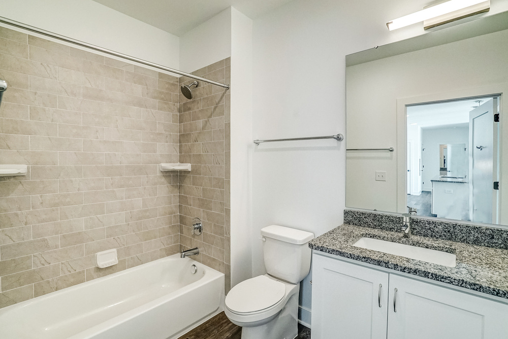 · Bathrooms (one or two per unit plan) feature granite countertops with undermount sink and luxury vinyl plank flooring to match living area.