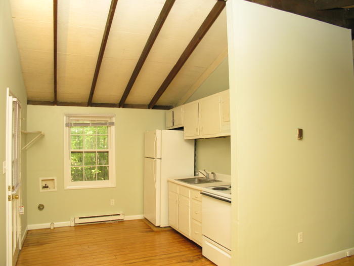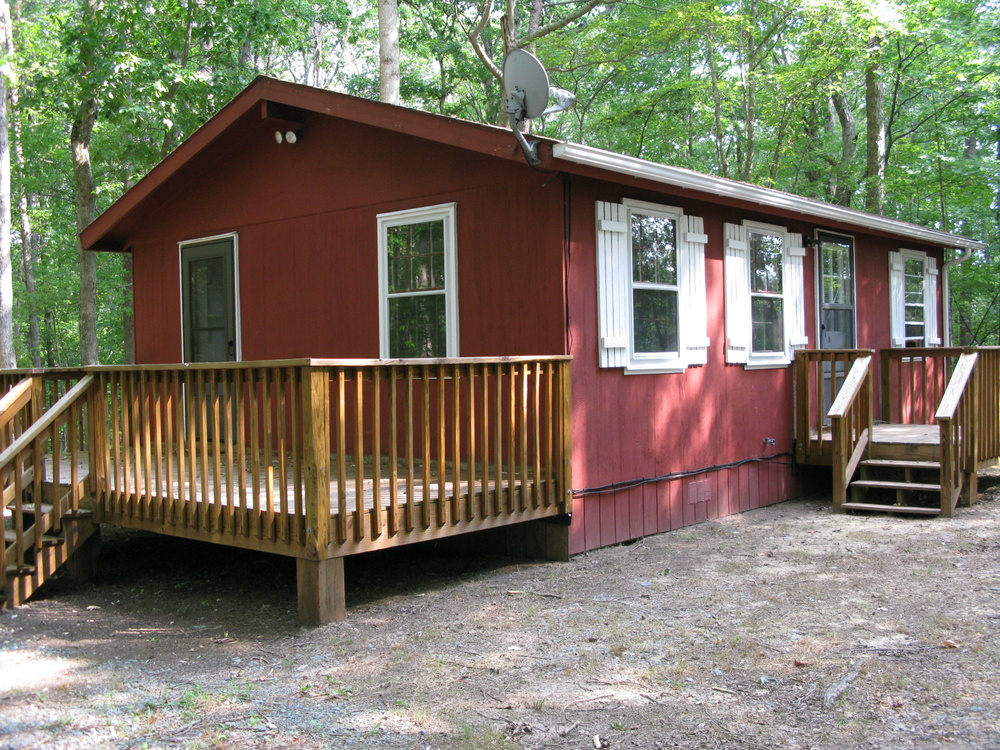 Cottage C, the only one bedroom cottage in the community. The spacious, newly sealed deck looks out into the woods and is perfect for nature sightings and relaxing views. Appliances include refrigerator, oven and stove, window AC units, and washer/dryer hookups.