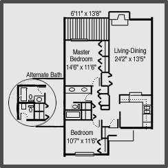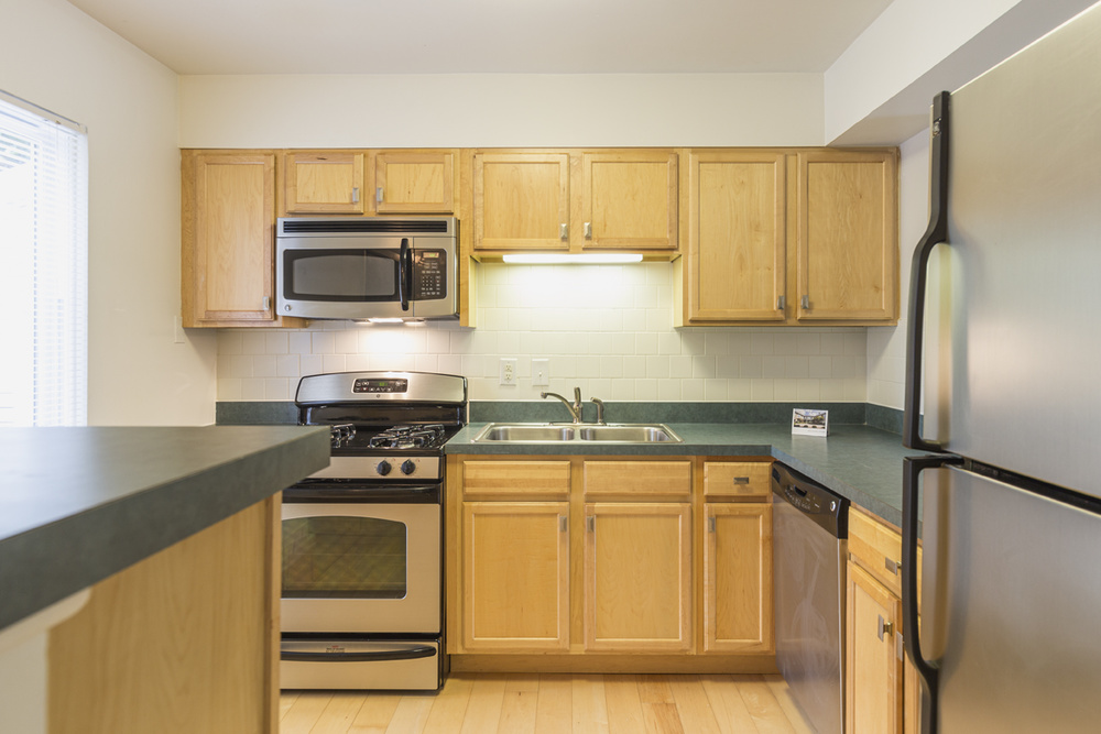 Apartment Description: Ash Tree’s two-bedroom apartment homes have an expansive living/dining room area that features a wood-burning fireplace with oversized windows that look out into the private patio or balcony. The kitchen includes stainless steel appliances, a gas range, and an opening that looks onto the living area, making it easy for entertaining. Each bedroom has ample space and vast closet space. The master bedroom has two closets and a private entrance to the balcony/patio. The bathroom is extremely spacious with generous counter space and double sinks. The updated, full-sized washer and dryer are tucked away behind folding closet doors.