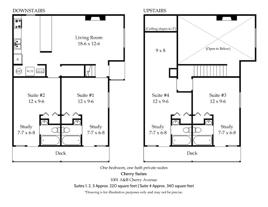 The Cherry Suites are located behind the UVA Hospital. These Charlottesville rentals are designed so that you have your own private bedroom, bathroom, and entrance.