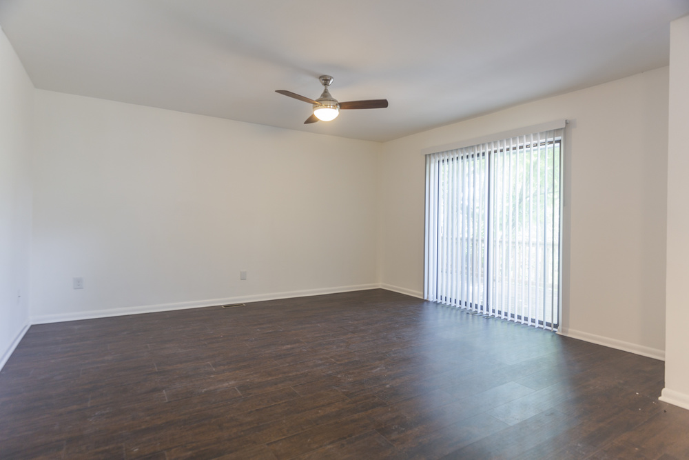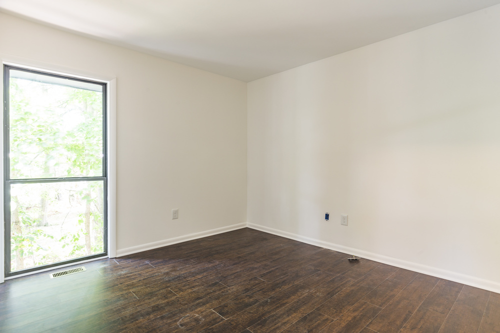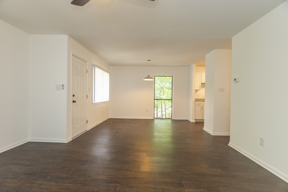 Dark plank hardwood flooring throughout for a sophisticated touch