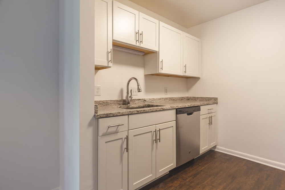 Soft-close kitchen cabinets with light granite countertops for a sleek, modern look