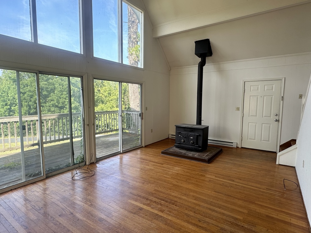 This beautiful single-family home features wood floors, wood burning stove, a loft, in-unit washer/dryer, and a huge deck overlooking the rolling hills.