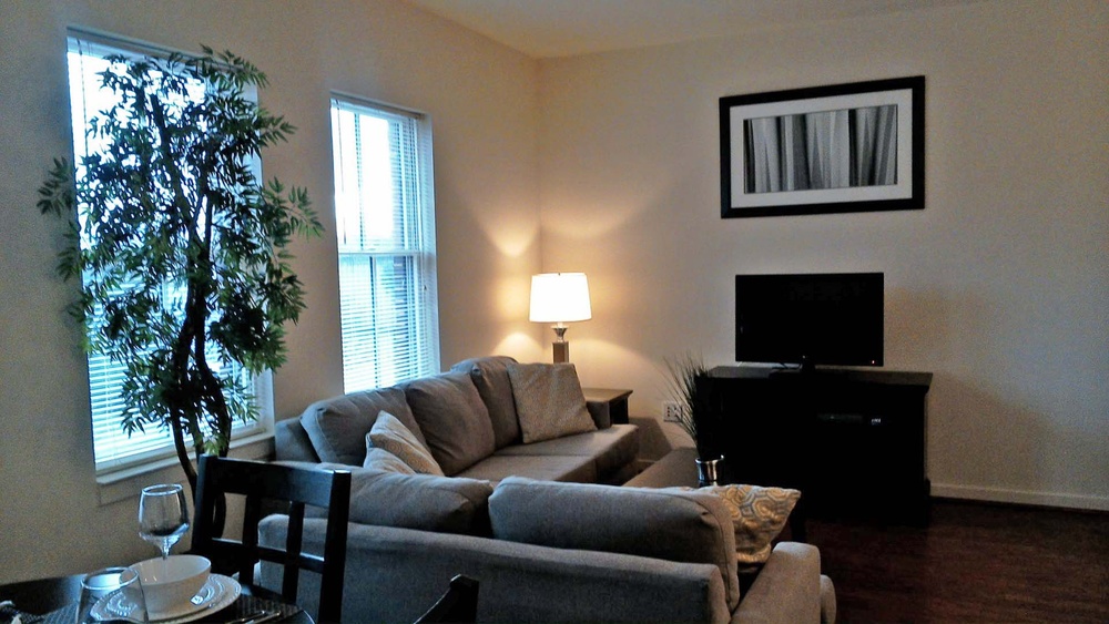 2 level 2 BR 1 bath loft located on the 3rd floor in Phase III. Nice pantry area, hardwood floors, floor to ceiling windows! Double vanity sinks in bath, washer/dryer located upstairs for close convenience! Optional furnished available! Up to 2 cats or 1 small dog welcome:)