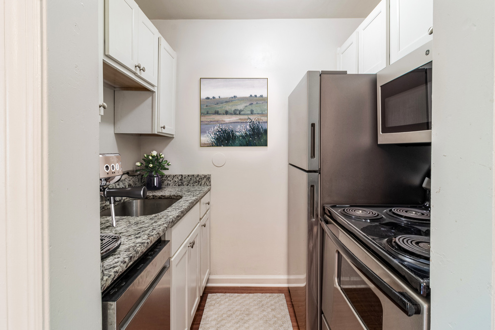 Electronic payments & resident portal, fully equipped kitchen, heat, stove, microwave, dishwasher, refrigerator, hardwood flooring, air conditioning, granite countertops, white cabinets and subway tile bathroom.