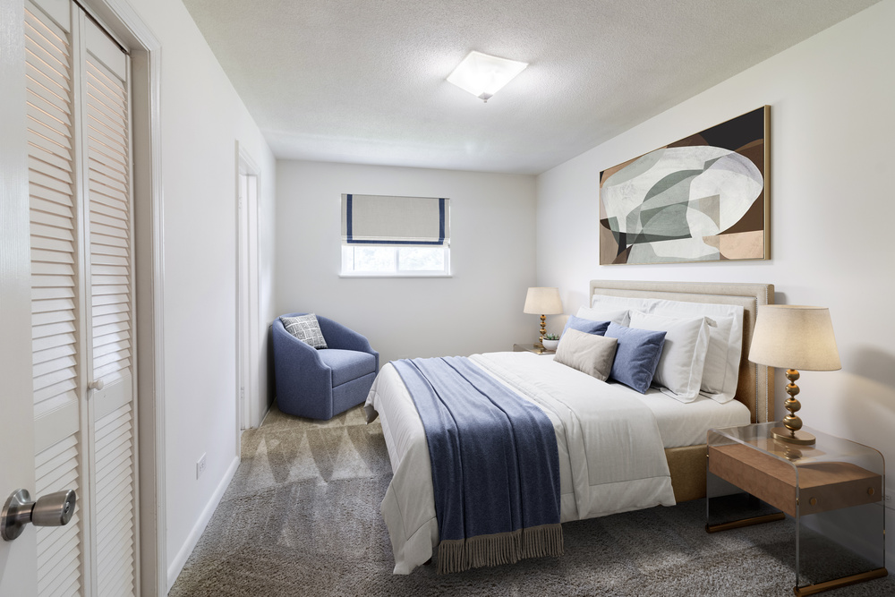Walk in closet, carpet in bedrooms, 24-hour emergency maintenance, natural light, clothes care center on site.