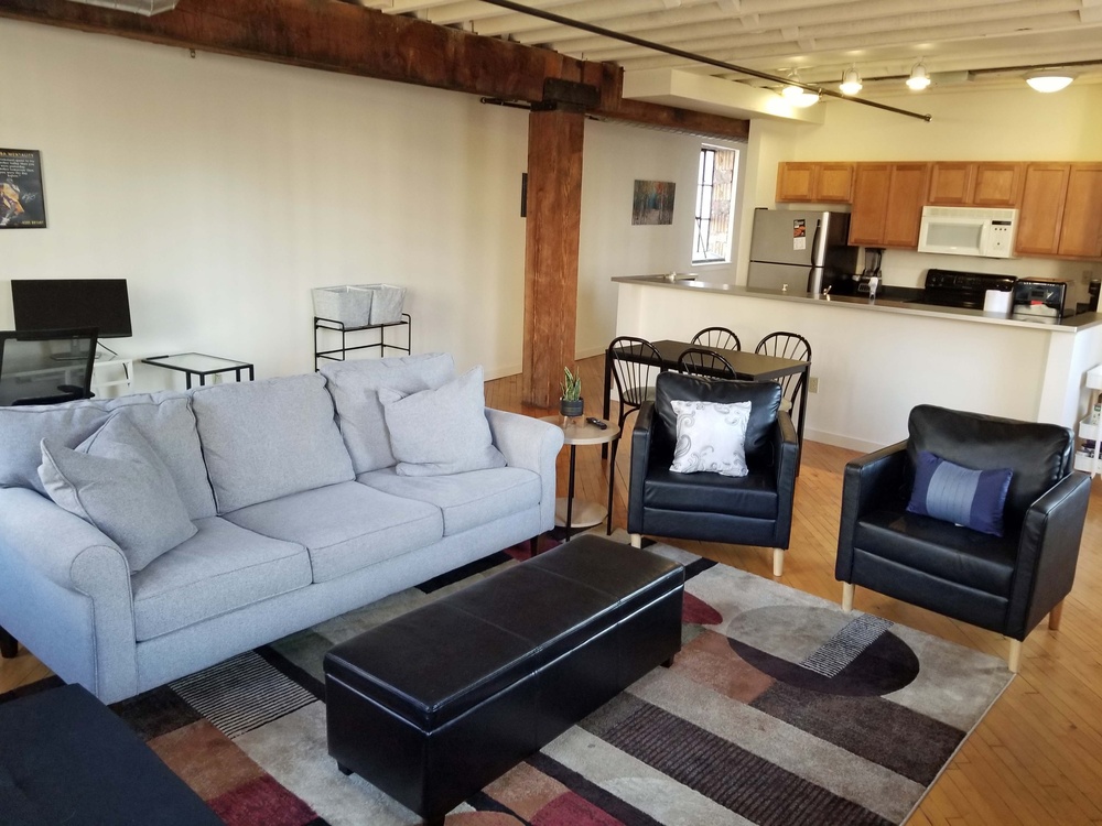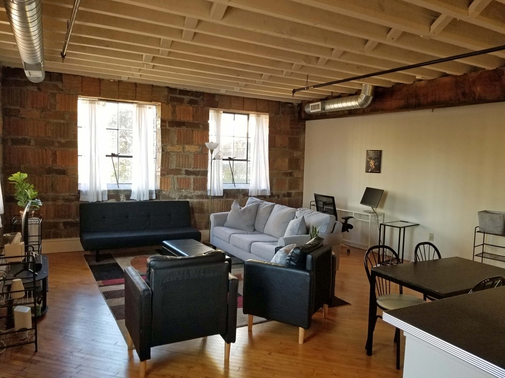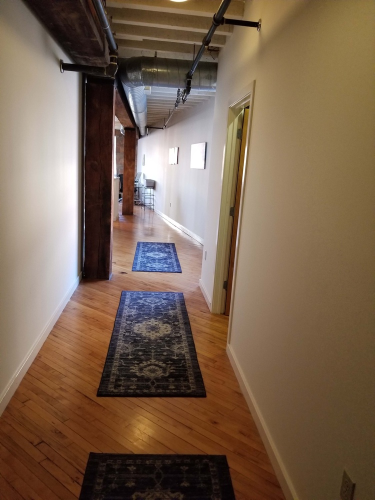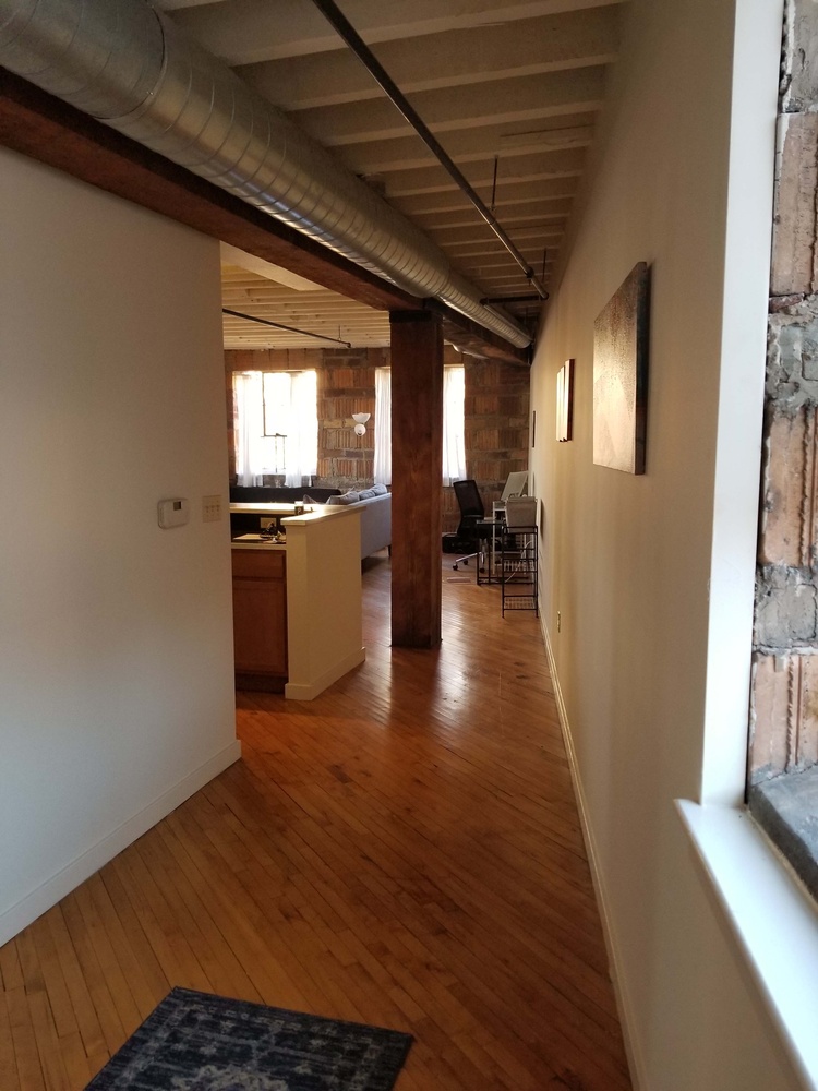 4th floor (top) 1 bedroom flat in Phase I, $2145, available as early as August 8th. The Hopper is our larger 1 bedroom with clay tile walls, exposed beams, transom windows and original hardwood flooring!